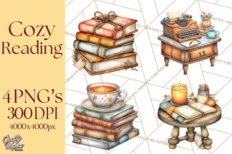 Similar Design Products to Cozy Reading and Library Clipart PNG, Fall Library Clip Art