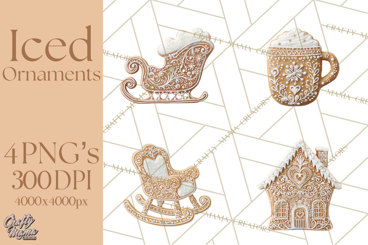 This delightful digital clipart collection features 68 unique files, each an elegant gingerbread icon illustration decorated with intricate white royal icing. Perfect for creating charming invitations, festive greeting cards, and unique holiday decor. Each design is a high-resolution PNG file at 300 DPI, ensuring crisp, clear prints. The images are 4000x4000px, offering exceptional quality for both digital and physical projects.