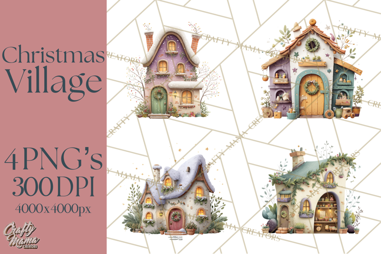 Christmas Village Houses Clipart, Festive Winter Homes PNG example image 1