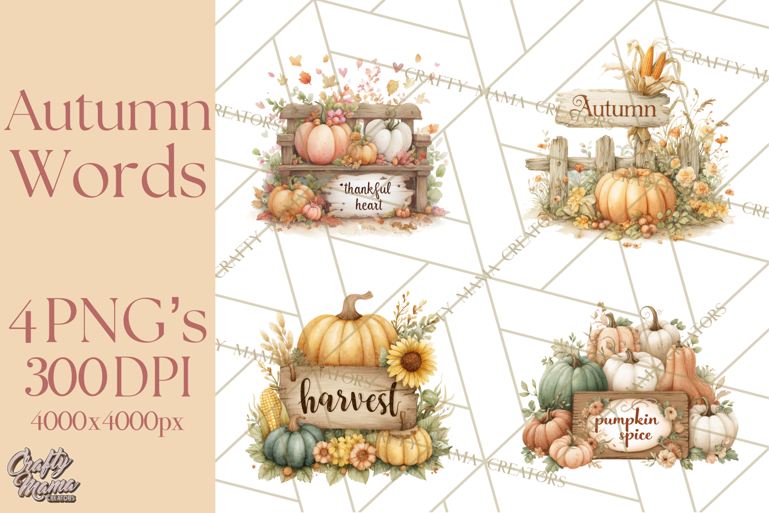 Get ready for autumn with this beautiful collection of 4 high-quality fall-themed clipart files! These designs are perfect for adding a touch of rustic charm to your projects.