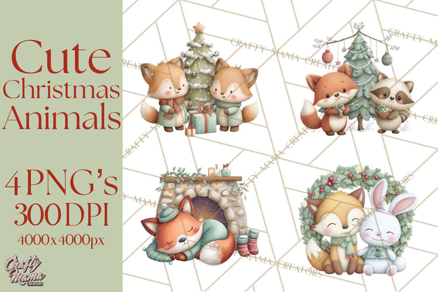 Bring the joy of Christmas to your designs with this adorable Christmas animals clipart collection! Featuring cute woodland and domestic animals in cozy, festive scenes, these watercolor illustrations are perfect for holiday projects full of charm and cheer.