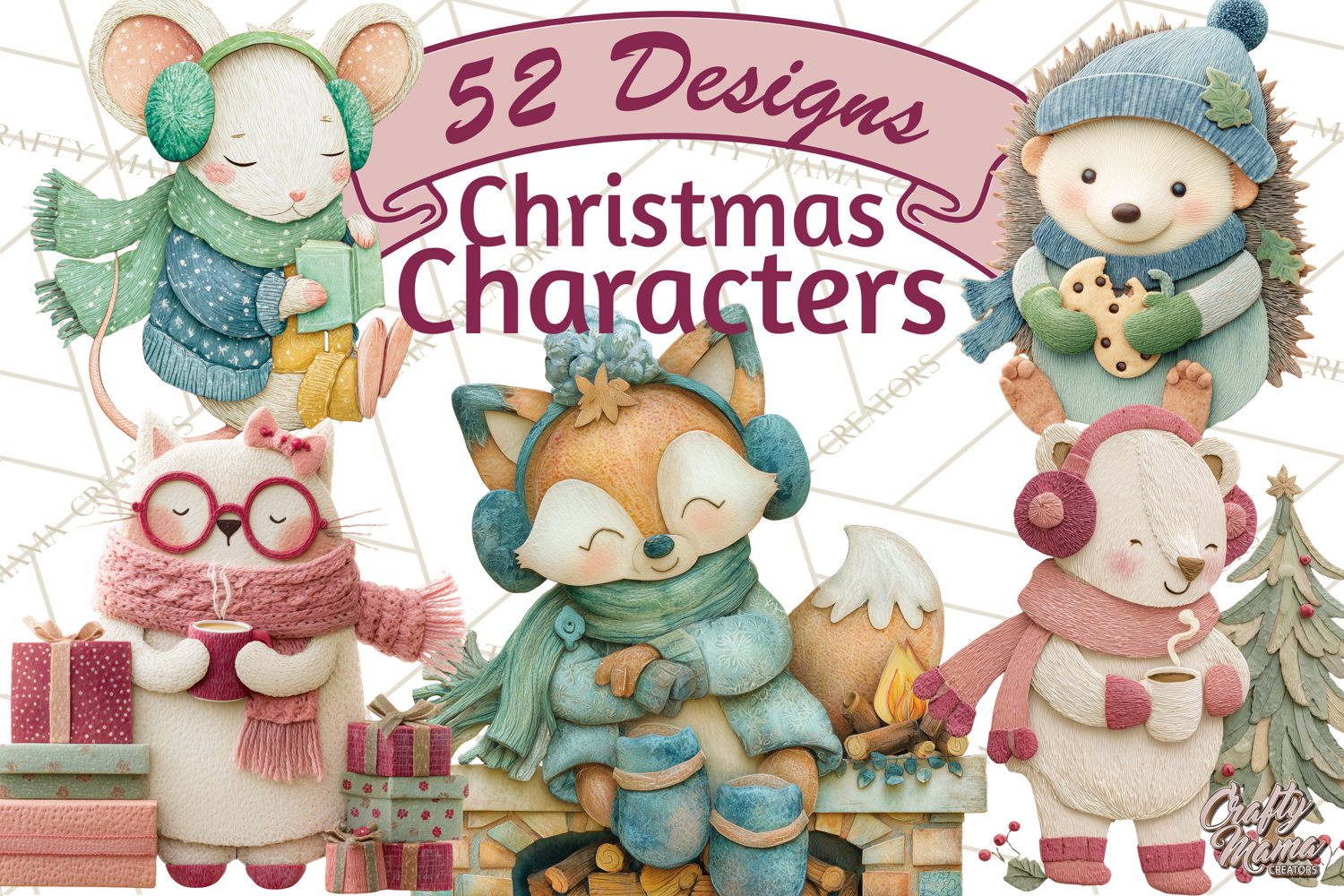 Cozy Christmas Animal Illustrations Blush Pink And Pine Green Clip Art Christmas Characters Cut-paper Png Cozy Winter Pet Clipart Set Handcrafted Holiday Animal Graphics Planner Sticker Festive Poses Sublimation Cozy Pet Outfits Textured Collage Animal Bundle Snow Day Pets And Critters Png Holiday Character Planner Icons