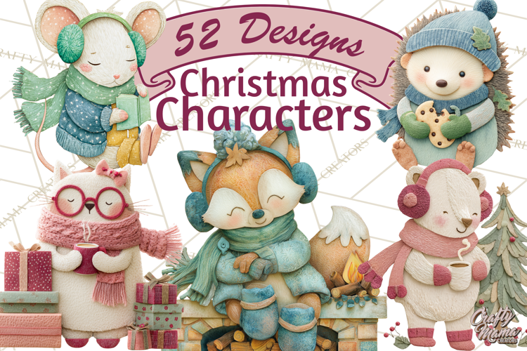 Meet your cozy crew with this Christmas Characters clipart collection — a festive set of textured cut-paper illustrations featuring pets in winter outfits, playful poses, and holiday scenes.