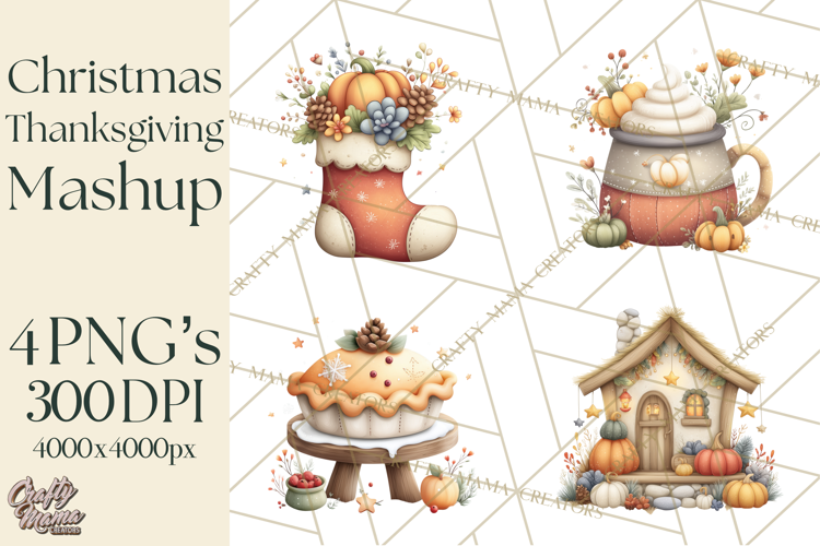 Add cozy charm to your seasonal designs with this Christmas Turkey Clipart Bundle — a rustic collection of holiday graphics featuring turkeys in Santa hats, pumpkins with snowflakes, fall leaves, pinecones, and festive crossover scenes.