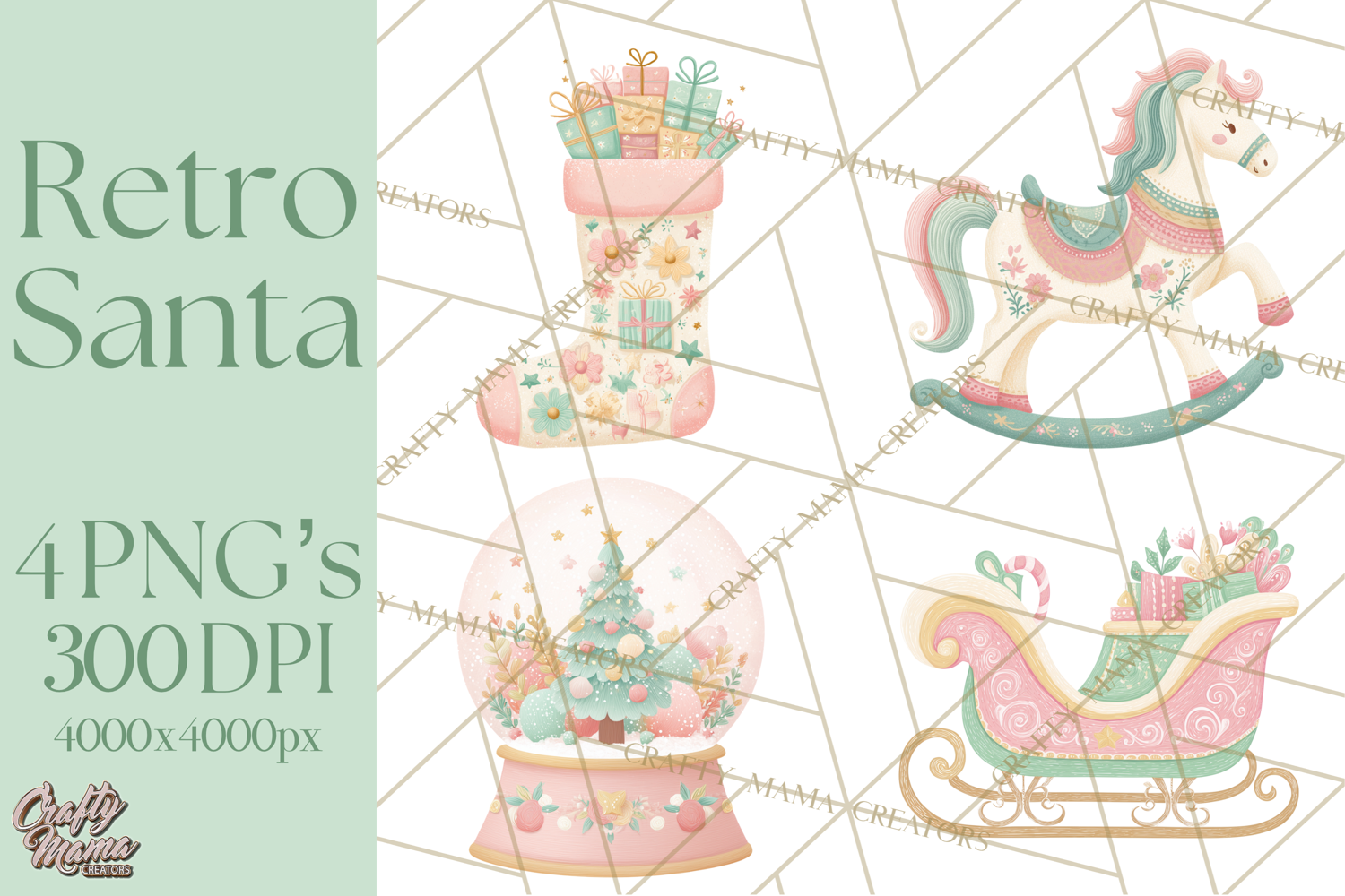 Bring a touch of vintage charm to your holiday projects with this Retro Pastel Santa clipart collection! Inspired by mid‑century Christmas cards, these whimsical Santas are perfect for planners, stickers, cards, scrapbooking, sublimation, and more. Each Santa is lovingly illustrated in soft pastel pinks, mint greens, and buttery yellows for a kitschy, nostalgic feel. Whether you’re creating festive stationery, decorating your planner, or designing holiday merch, these graphics will make your projects shine.