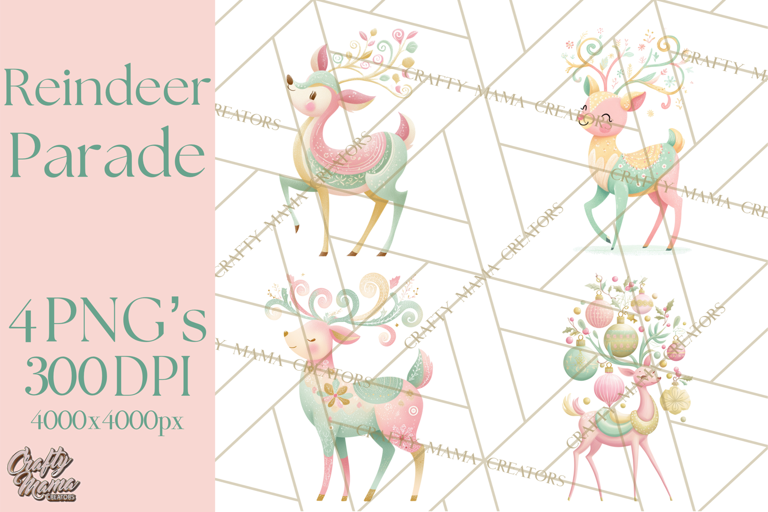 Bring whimsical vintage charm to your holiday projects with this Pastel Reindeer Parade clipart collection! Inspired by mid‑century Christmas cards, these adorable pastel reindeer are perfect for planners, stickers, cards, scrapbooking, sublimation, and more. Each reindeer is illustrated in soft pastel pinks, mint greens, and buttery yellows, capturing the kitschy, nostalgic feel of retro holiday decor. Whether they’re prancing, pulling sleighs, or sipping cocoa, these charming designs will add a playful touch to your festive creations.