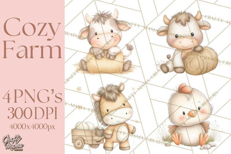 Farm Animal Clipart PNG, Cozy Barnyard Illustrations example image 1