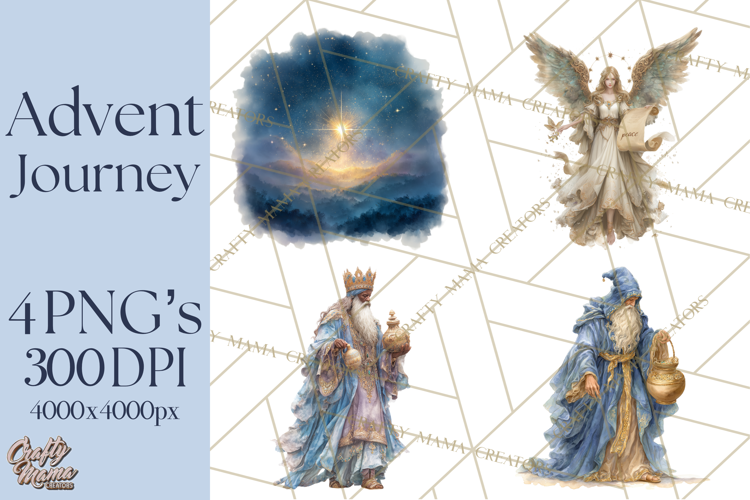 Celebrate the true meaning of Christmas with Advent Journey â€” a reverent collection of nativity PNG clipart featuring Mary, Joseph, baby Jesus, angels, shepherds, wise men, manger animals, and the star of Bethlehem.