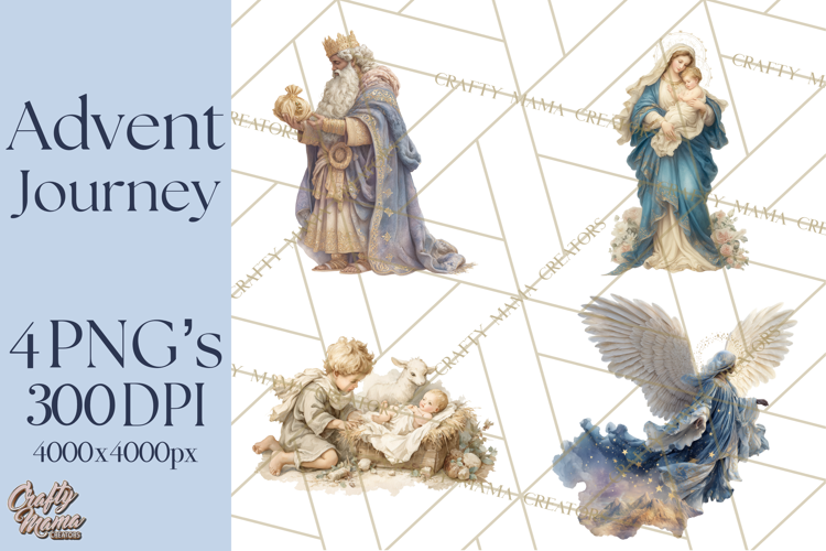Celebrate the true meaning of Christmas with Advent Journey â€” a reverent collection of nativity PNG clipart featuring Mary, Joseph, baby Jesus, angels, shepherds, wise men, manger animals, and the star of Bethlehem.