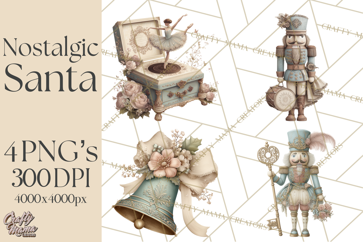 Step into a nostalgic Christmas dream with this charming Vintage Santa Clipart. This collection features a delightful cast of characters and festive props in a vintage and Victorian-inspired look. These high-quality images are perfect for creating classic holiday cards, festive prints, gift tags, or other nostalgic Christmas crafts.