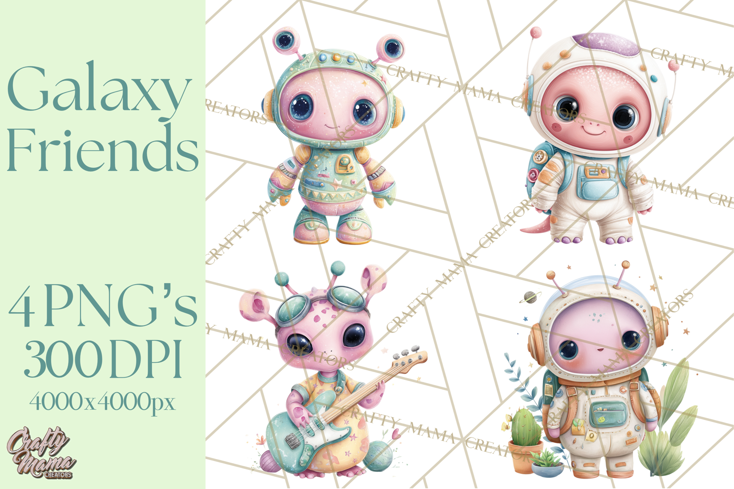 Get ready for an out-of-this-world adventure with this adorable digital download! This is a set of 4 individual high-quality images featuring cute astronauts, friendly aliens, and whimsical space-themed props.
