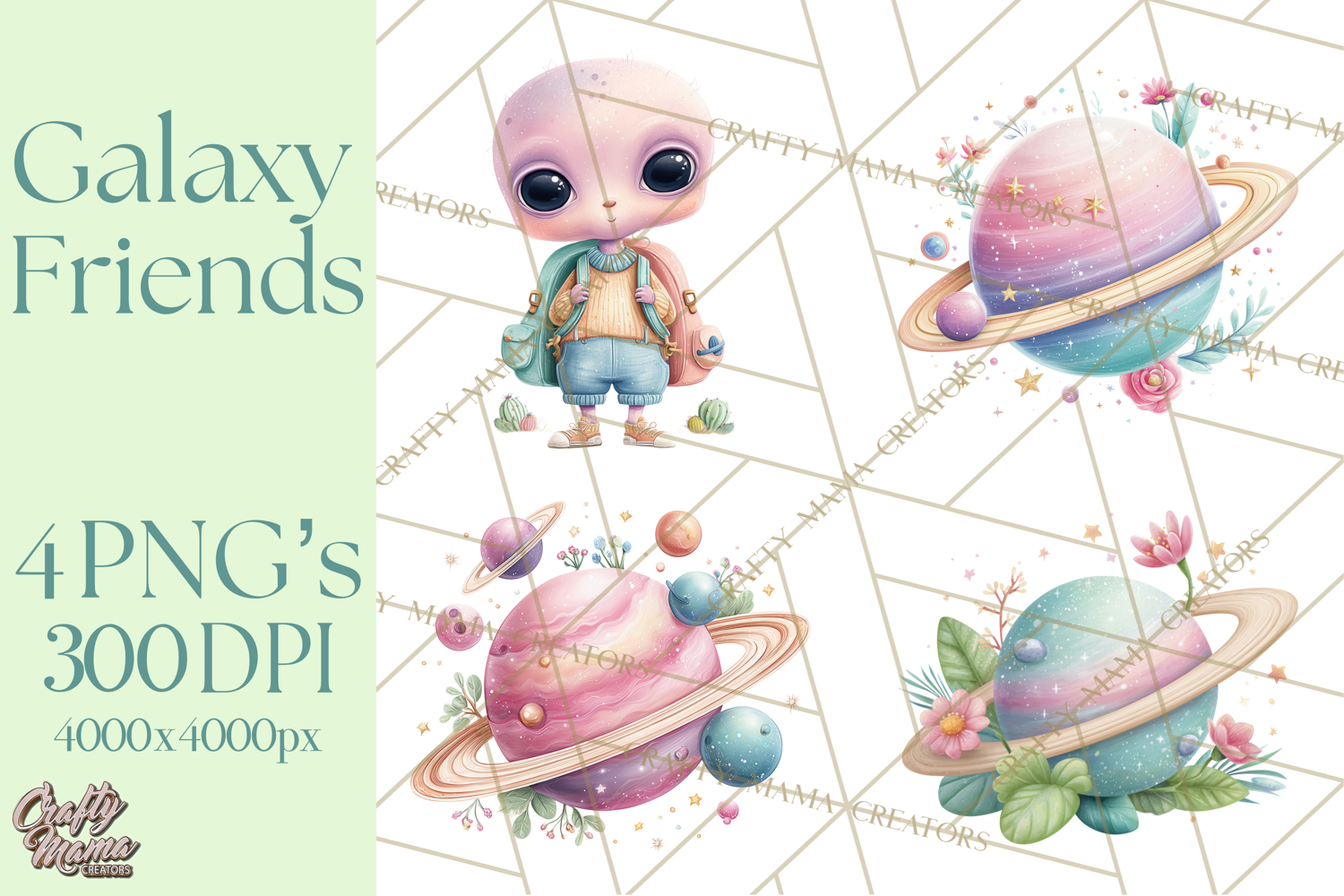 Get ready for an out-of-this-world adventure with this adorable digital download! This is a set of 4 individual high-quality images featuring cute astronauts, friendly aliens, and whimsical space-themed props.