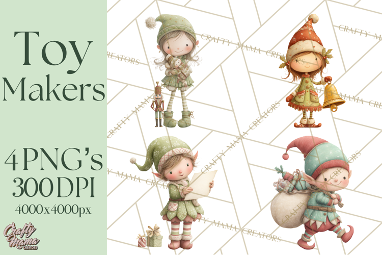 Dreamy Fantasy Art Santa's Elves Christmas Clipart Hyperdetailed Elf Illustrations Festive Workshop Digital Art Whimsical Watercolor Illustrations Christmas Toys And Gifts Png Printable Whimsical Characters Cinematic Quality Graphics Magical Christmas Elves Detailed Elf Characters