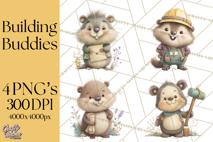 Get ready to build something special with this adorable digital download! This is a set of 4 individual high-quality images featuring cute animals and their construction vehicles.