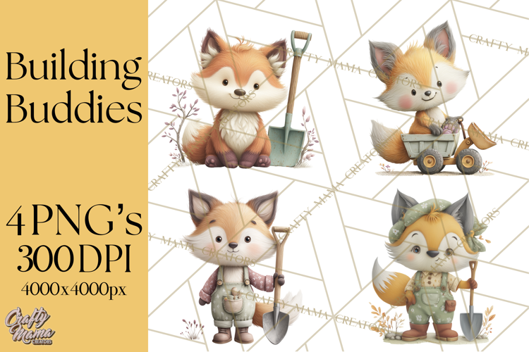 Get ready to build something special with this adorable digital download! This is a set of 4 individual high-quality images featuring cute animals and their construction vehicles.