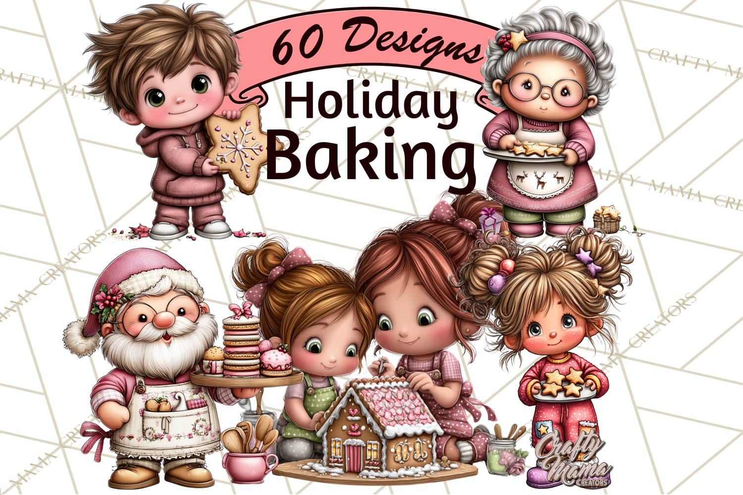 Get into the holiday spirit with this cozy Christmas Cookies clipart collection! Each illustration features people baking, decorating, and enjoying festive cookies with holiday details like trays, rolling pins, and mugs of cocoa. Perfect for Christmas cards, invitations, party printables, scrapbooking, and sublimation projects.