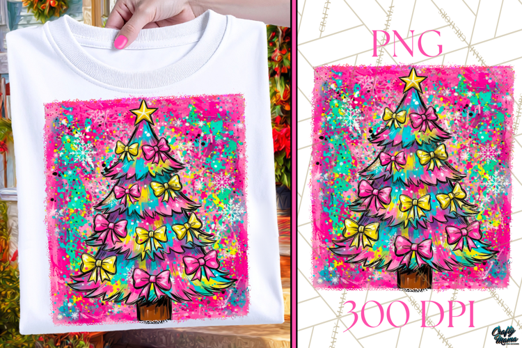Neon Bow Christmas Tree PNG | Christmas Design example image 1