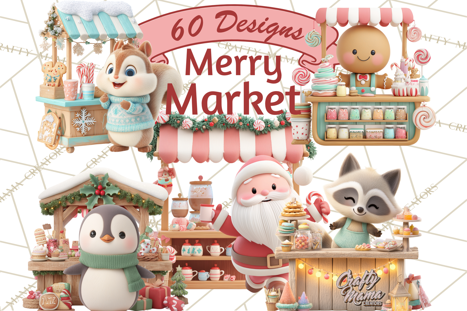 Bring the cozy charm of the holidays to your designs with this Christmas Market Stall Clipart collection! Each festive illustration features cheerful Christmas characters — from Santa and elves to reindeer, penguins, and snowmen — running their own colorful market stalls. Perfect for adding warm Christmas vibes to your printable or digital projects.