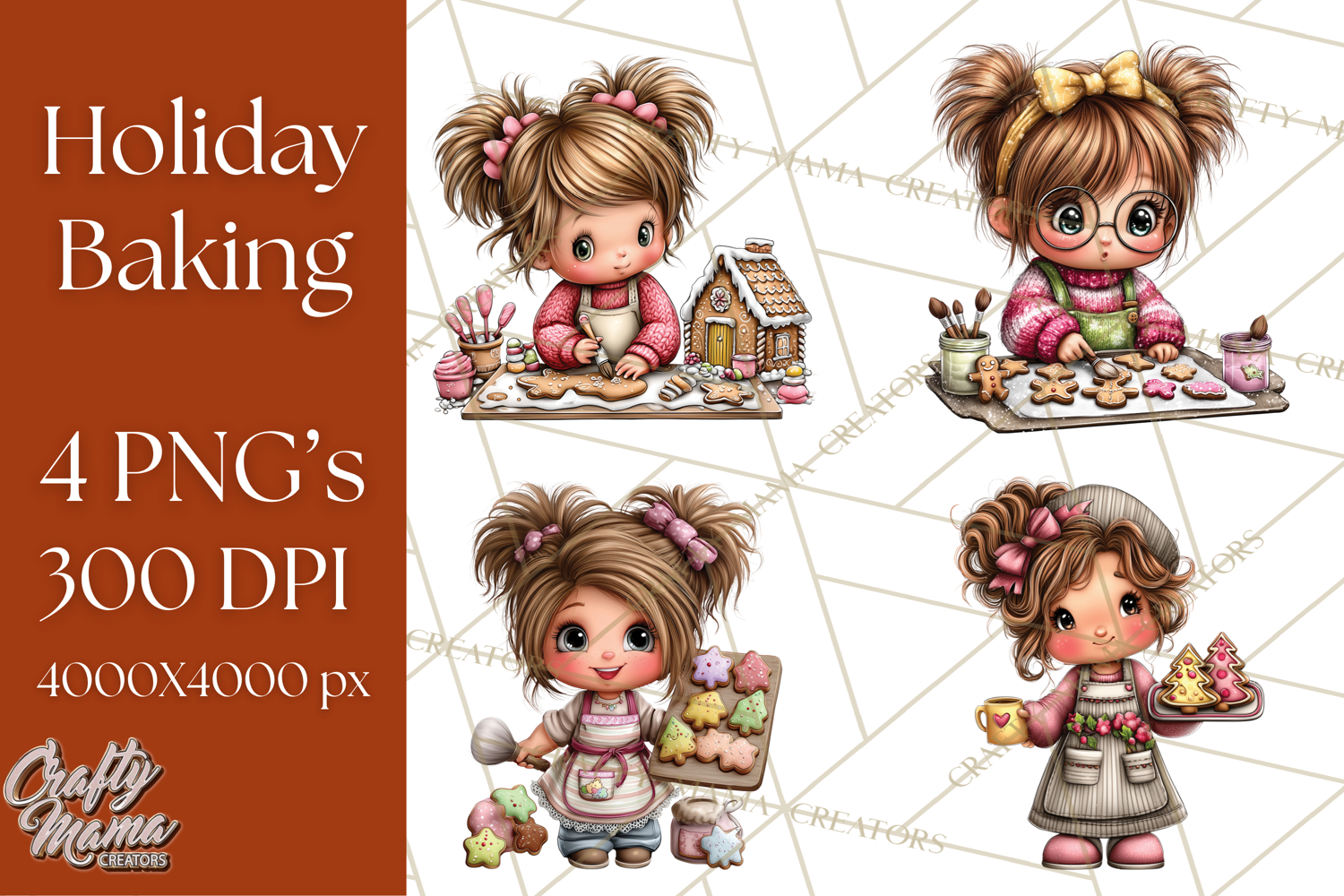 Get into the holiday spirit with this cozy Christmas Cookies clipart collection! Each illustration features people baking, decorating, and enjoying festive cookies with holiday details like trays, rolling pins, and mugs of cocoa. Perfect for Christmas cards, invitations, party printables, scrapbooking, and sublimation projects.