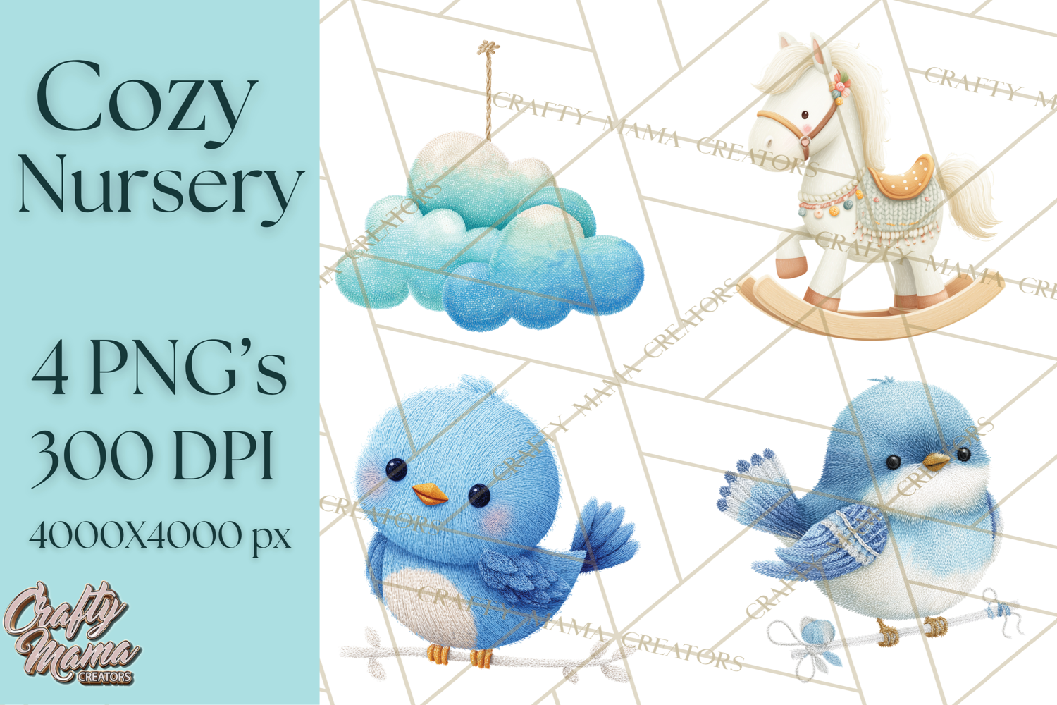 Welcome a world of coziness and charm into your designs with this incredibly sweet nursery animal artwork. This collection features adorable, chubby baby animals and essential nursery props, all rendered in a soft, gentle watercolor style with delightful knitted textures. It's the perfect resource for creating stunning baby shower invitations, nursery wall art, personalized apparel, digital scrapbooking, and more!