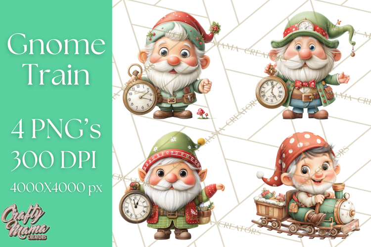 All aboard the festive express! This unique Gnome Train Clipart collection features full body gnome characters working as engineers and conductors, loading gifts onto their miniature Christmas train. Perfect for creating unique holiday cards, children's pajamas, festive sublimation crafts, and Christmas party invitations. Our design pack includes all the gifts, tracks, lanterns, and gnome accessories you need for an adorable project.