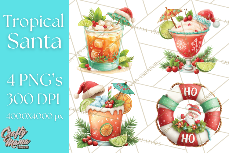 Give your customers a warm holiday escape with this unique Tropical Santa Clipart collection! Featuring full bodySanta, Mrs. Claus, and elves on a sunny beach vacation with decorated palm trees, surfboards, and sandmen. Perfect for creating funny Christmas cards, tropical-themed holiday gifts, sublimation designs, and unique party invitations. Our design pack includes all the sun, sand, and festive props you need.