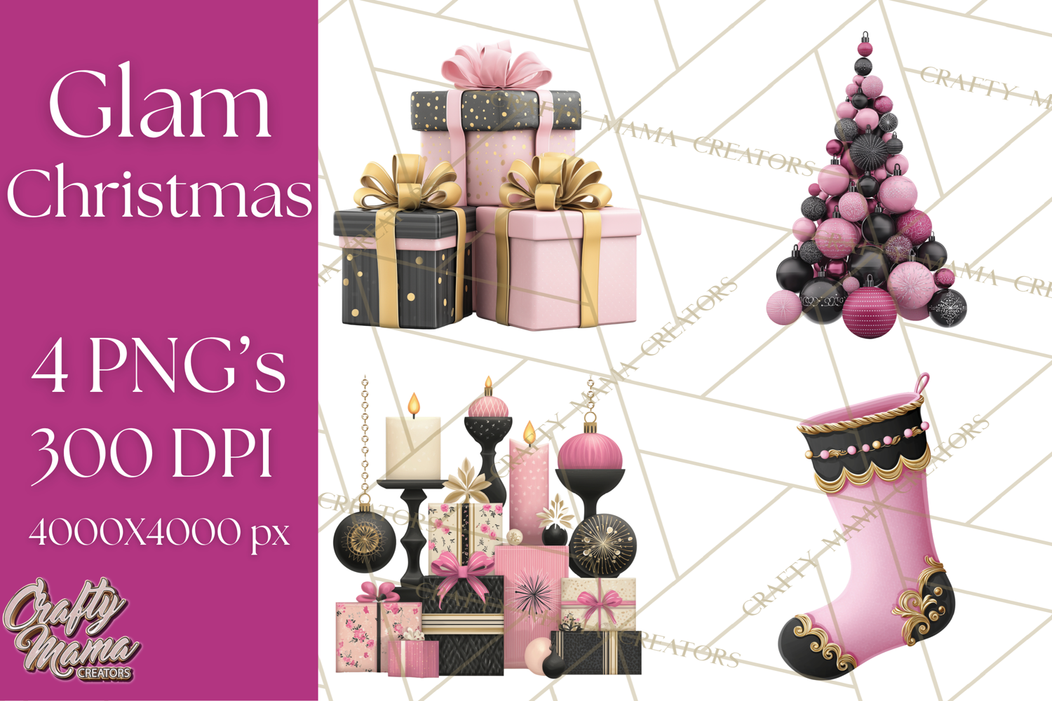 Pink and Black Glam Christmas PNG Clipart example image 1