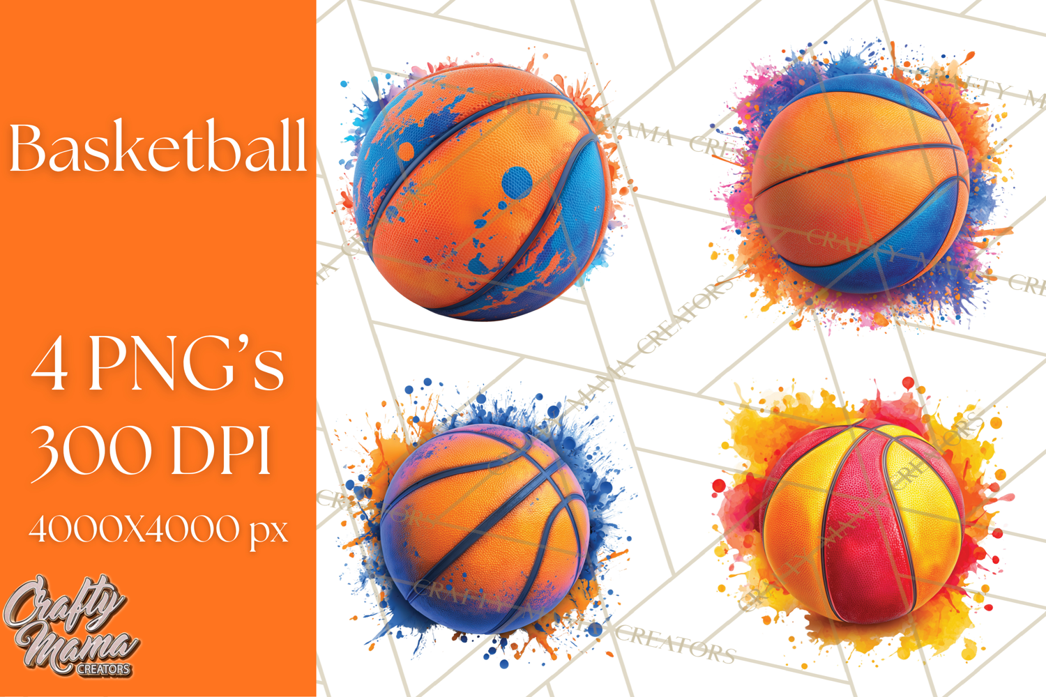 Basketball Clipart PNG with Team Color Paint Splash Design