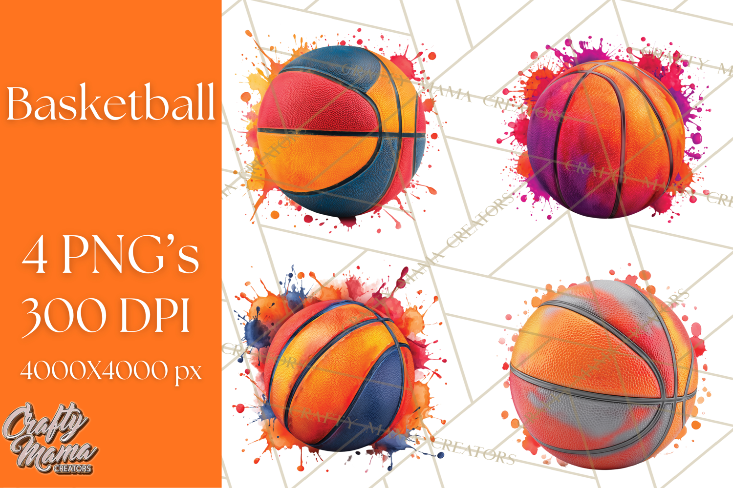 Basketball Clipart PNG with Team Color Paint Splash Design