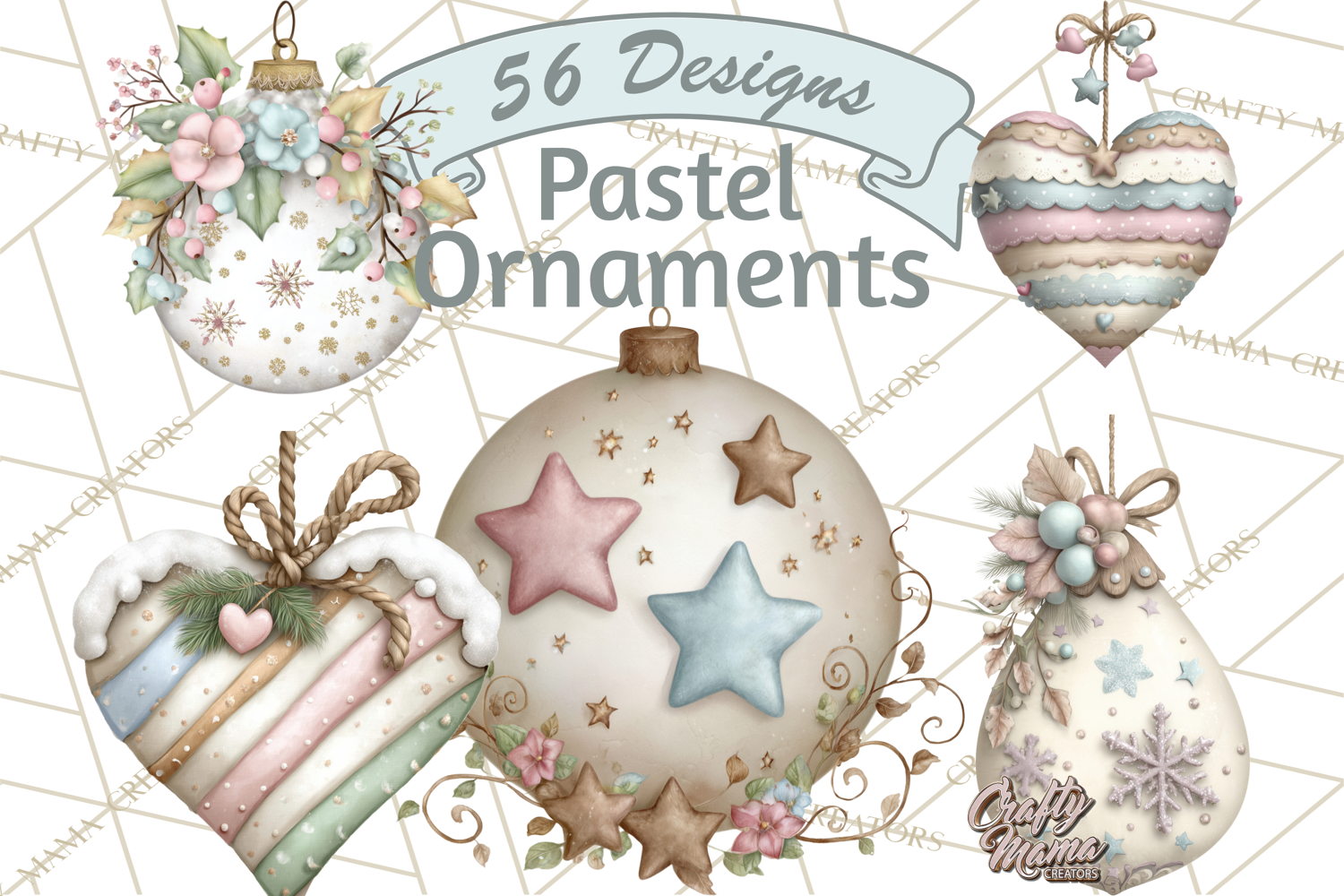 Add a touch of whimsy to your holiday projects with this Pastel Christmas Ornaments Clipart Collection! Featuring 56 beautifully designed single ornaments in soft pinks, mint, blues, and lavender, each in a watercolor style.