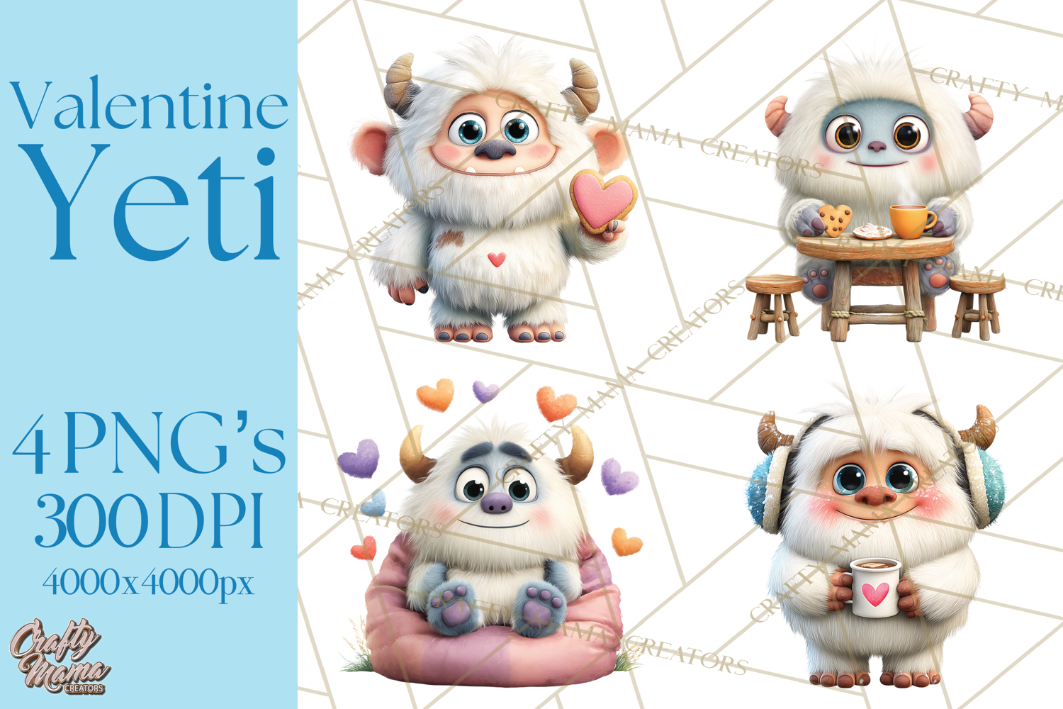 Celebrate Valentine’s Day with this adorable Valentine Yeti Clipart collection — a playful mix of sweet and silly love-themed designs perfect for your creative projects! Each cute yeti illustration features cozy Valentine scenes with hearts, cocoa, roses, balloons, and gifts — bringing a touch of charm and fun to every design.