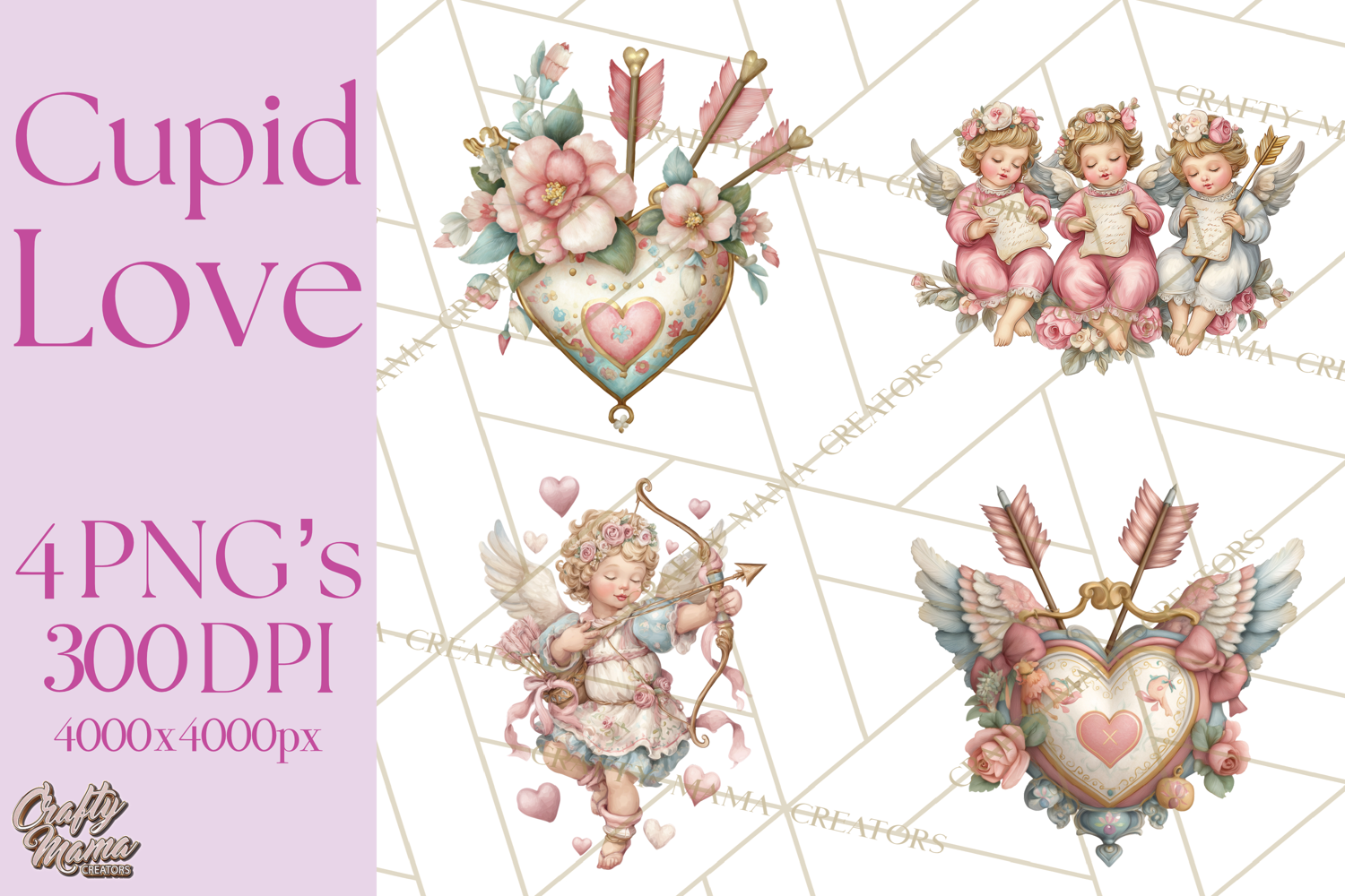 Add a touch of whimsy to your Valentine designs with this Cupid and Cherub Valentine Clipart collection! Featuring 4 adorable PNGs of cherubs, cupids, hearts, bows, arrows, clouds, ribbons, scrolls, and love letters — perfect for romantic stationery, sublimation, stickers, or digital crafts.