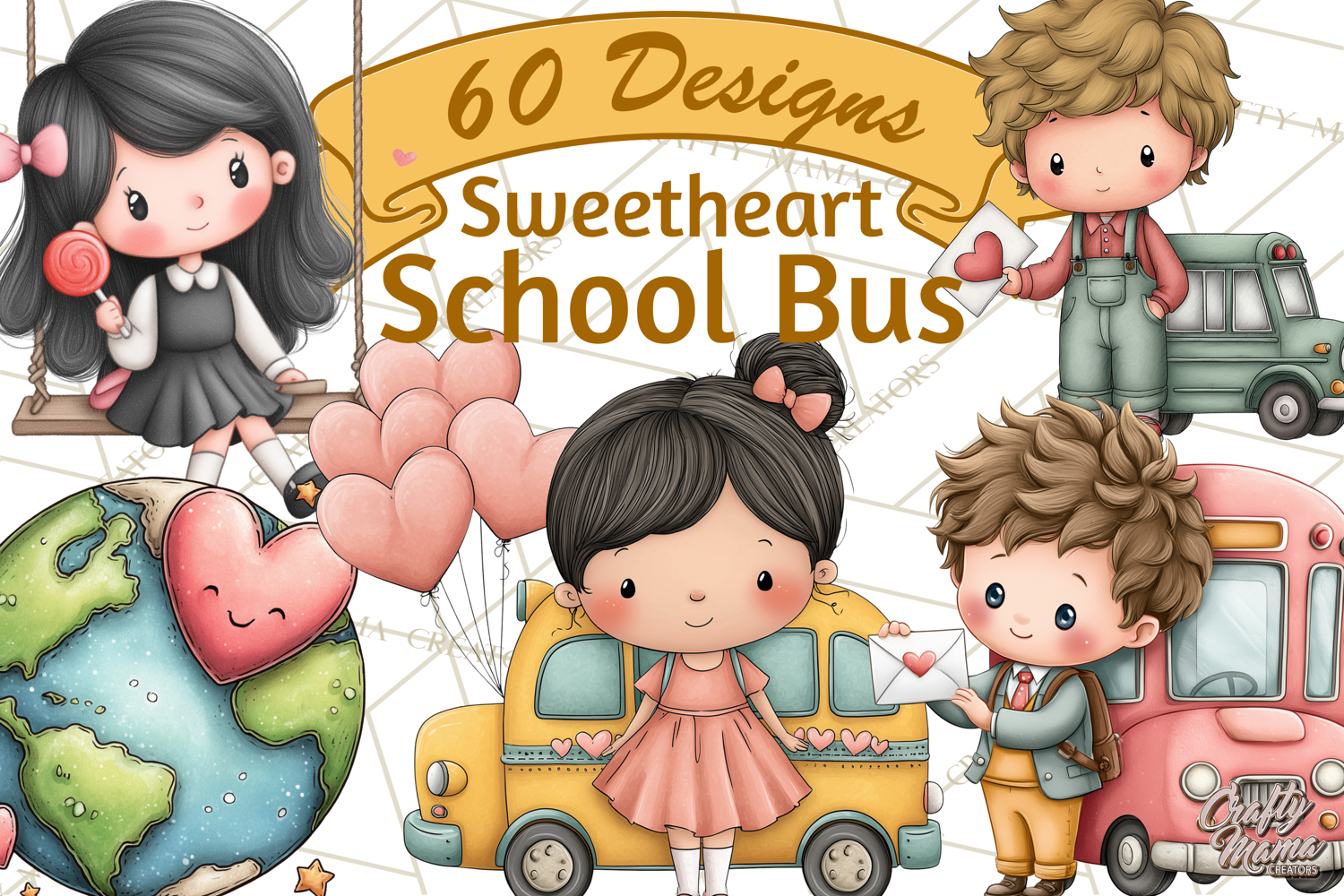 Similar Design Products to Sweetheart School Bus Clipart PNG, Kids Valentine Art