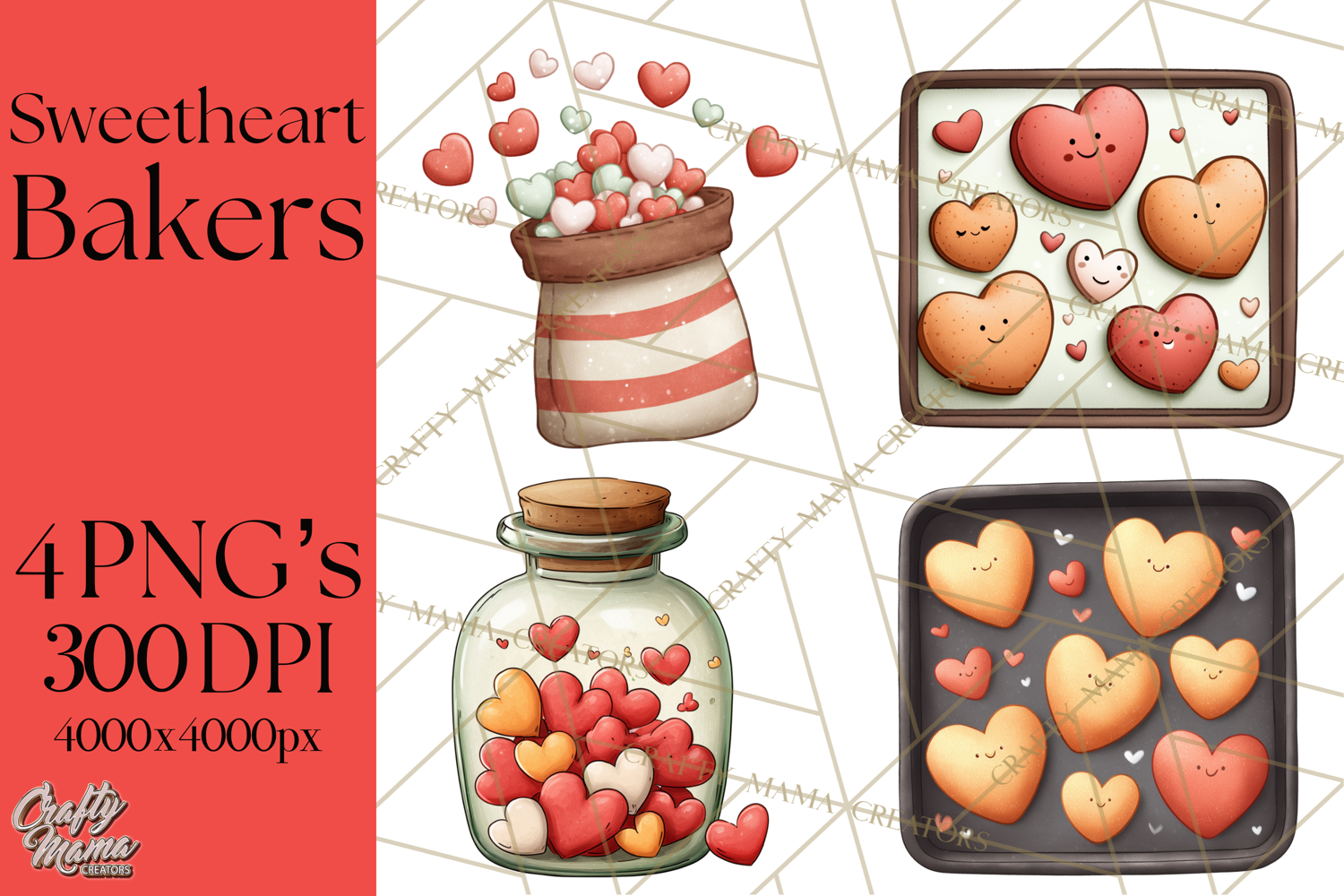 Whip up some love with this delightful Sweetheart Baking Crew Clipart digital download! This charming collection features adorable animal chefs – including a cunning fox, a cheerful bunny, and a cuddly bear cub – busy baking and decorating heart-shaped treats. Perfect for Valentine's Day cards, party invitations, kitchen decor, kids' crafts, and sweet sublimation projects!