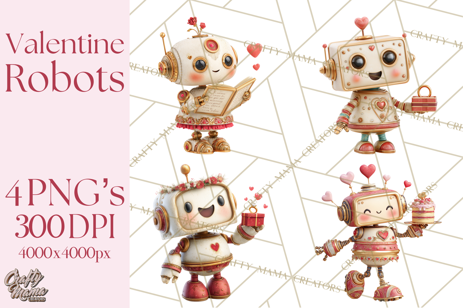 Valentine Robot Png Clipart, Cute Valentine Characters example image 1