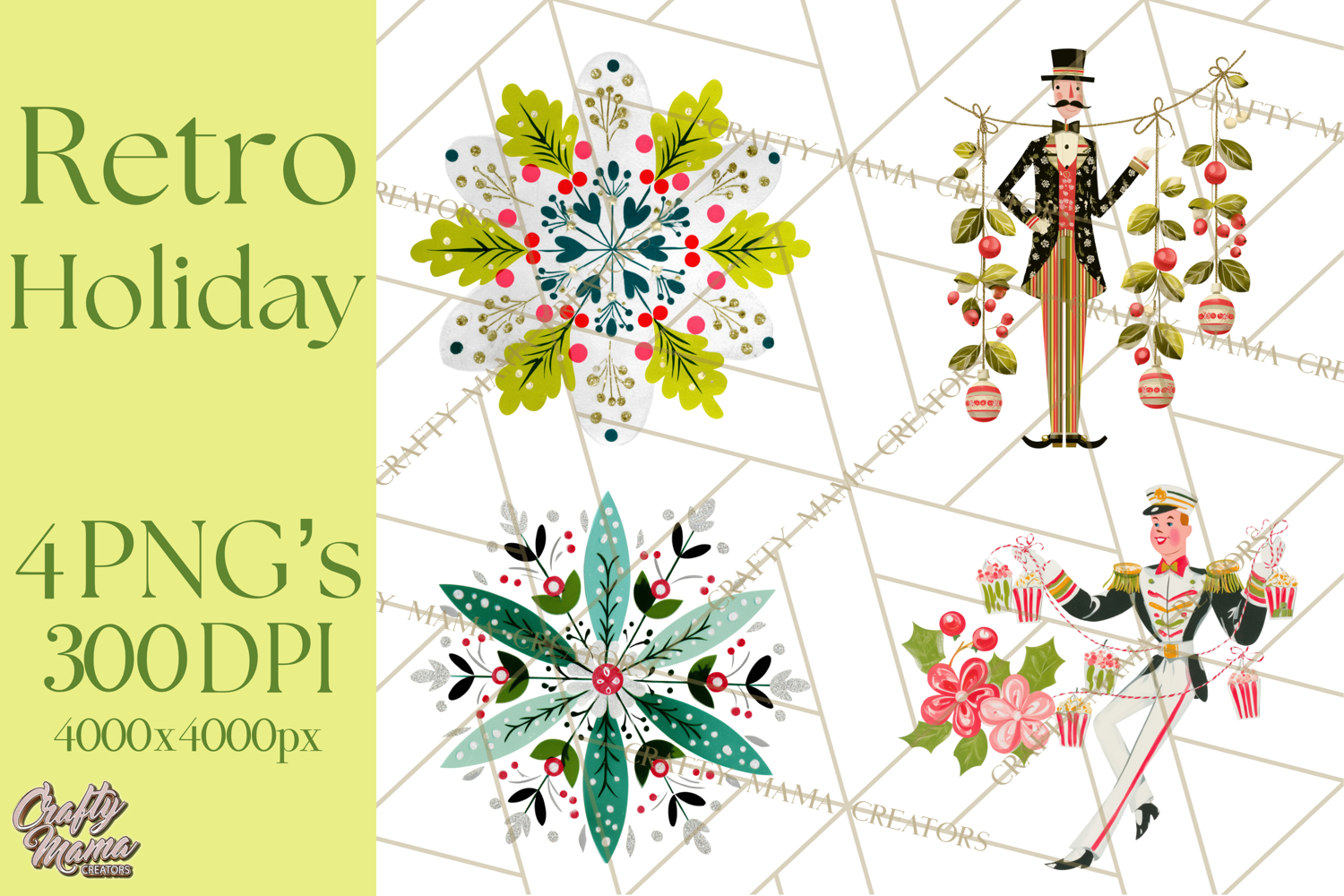 Midcentury Modern Christmas Clip Art, Retro Holiday PNG
