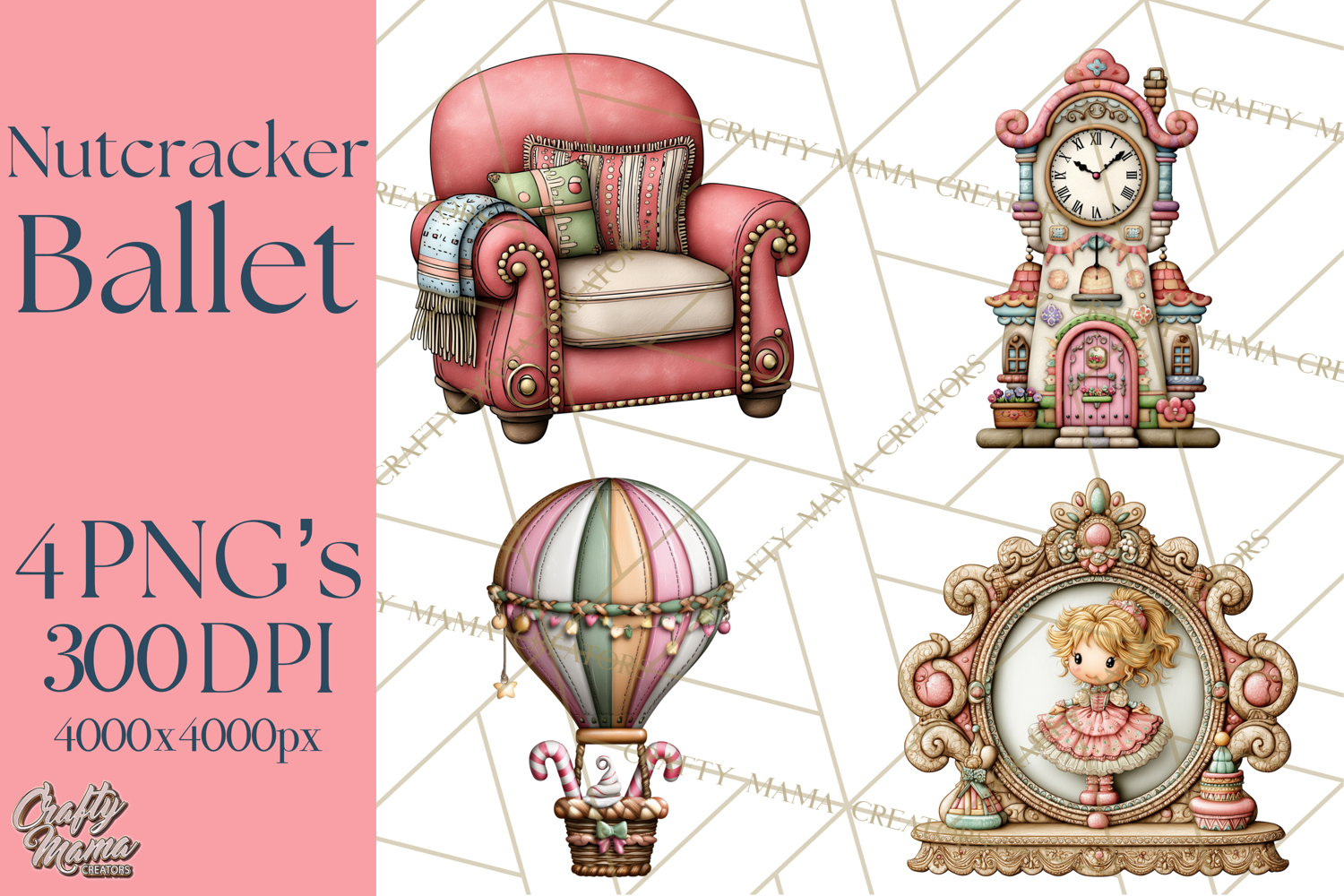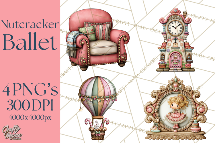 Enter the magical world of the Nutcracker Ballet Miniature Set! This elegant collection features the beloved characters and fanciful props from the classic holiday story, all rendered in beautiful rich colors and exquisite detail. These high-quality graphics are perfect for festive invitations, sophisticated apparel, holiday party décor, or creating your own miniature stage scenes.
