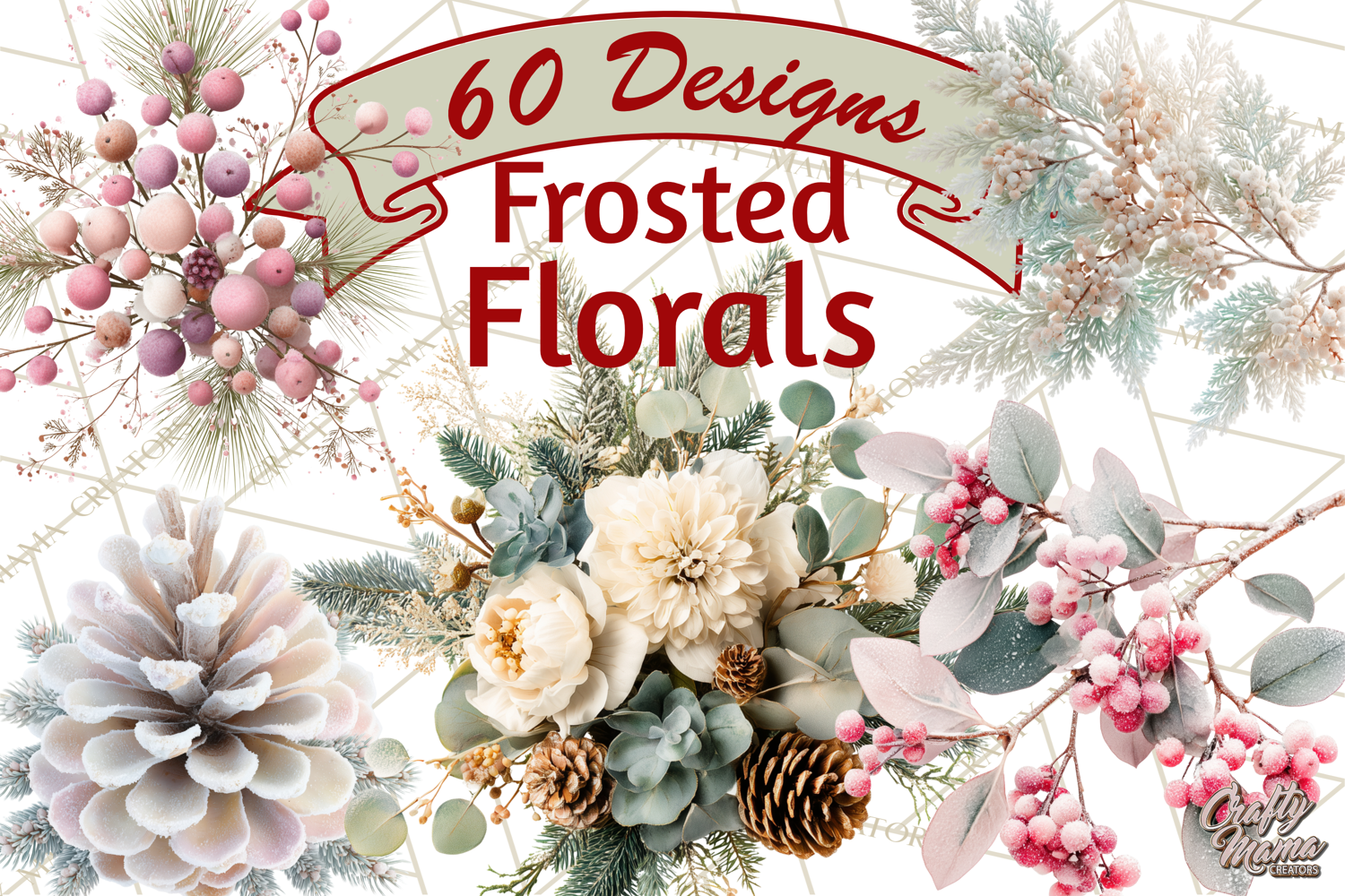 Similar Design Products to Frosted Florals Clipart PNG, Neutral Winter Botanicals