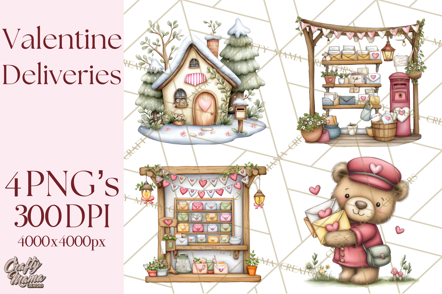 Deliver some woodland charm this Valentine’s Day! This adorable clipart collection features forest animals as cheerful mail carriers, delivering love letters through a whimsical woodland post office world. Perfect for creating cards, invitations, stickers, and other Valentine printables!