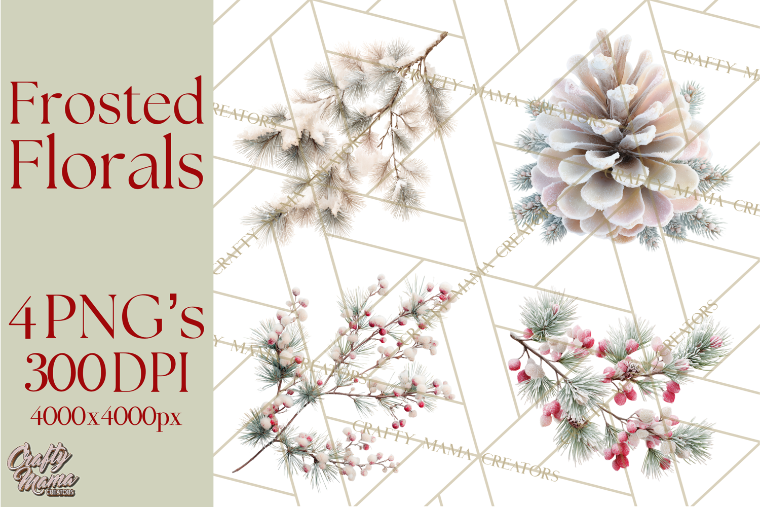 Bring the calm beauty of winter into your designs with this Frosted Florals Clipart PNG collection! Featuring delicate pine branches, eucalyptus sprigs, frosted leaves, berries, and pinecones in soft neutral winter tones, these illustrations are perfect for creating greeting cards, planners, stickers, wall art, and more.
