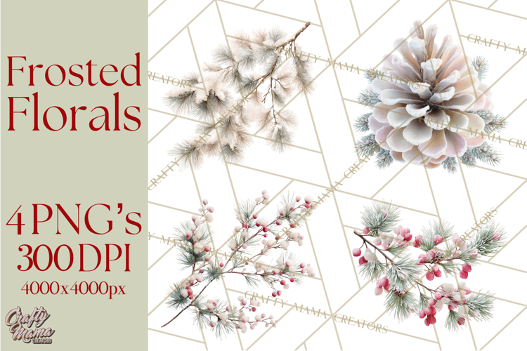 Similar Design Products to Frosted Florals Clipart PNG, Neutral Winter Botanicals