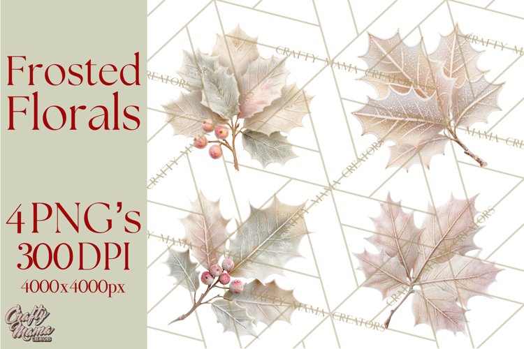 Similar Design Products to Frosted Florals Clipart PNG, Neutral Winter Botanicals