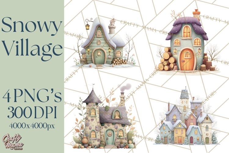 Similar Design Products to Snowy Village Clipart PNG, Cozy Winter Cottages