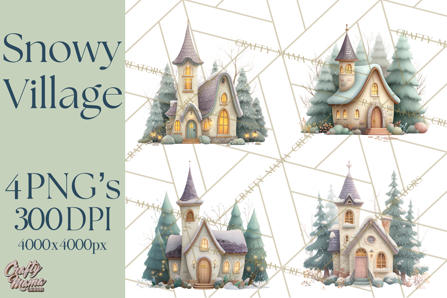 Similar Design Products to Snowy Village Clipart PNG, Cozy Winter Cottages