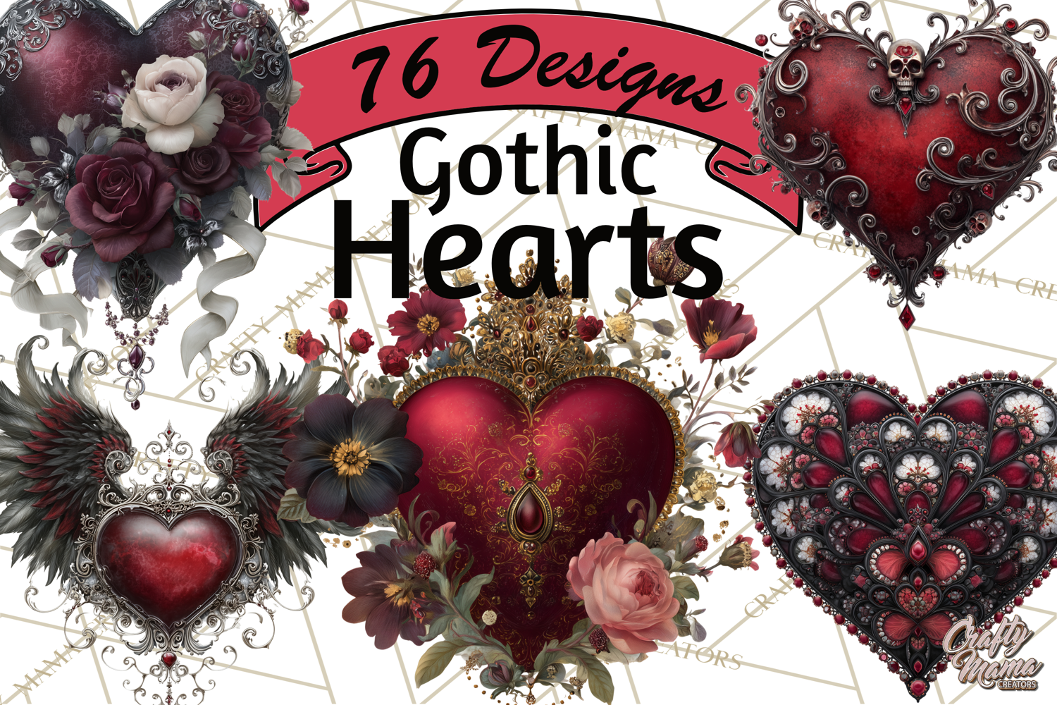 Similar Design Products to Ornate Gothic Valentine Hearts, Dark Romantic Clipart PNG