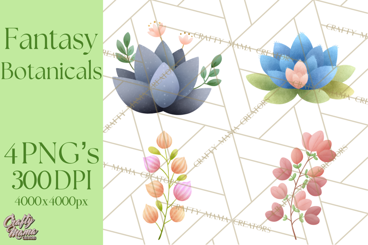 Bring a touch of whimsical nature to your creative projects with this Fantasy Botanical Oddities collection! Each illustration features imaginative, one-of-a-kind plants designed to look magical yet believable — perfect for planners, stickers, wall art, journals, invitations, sublimation, and more.