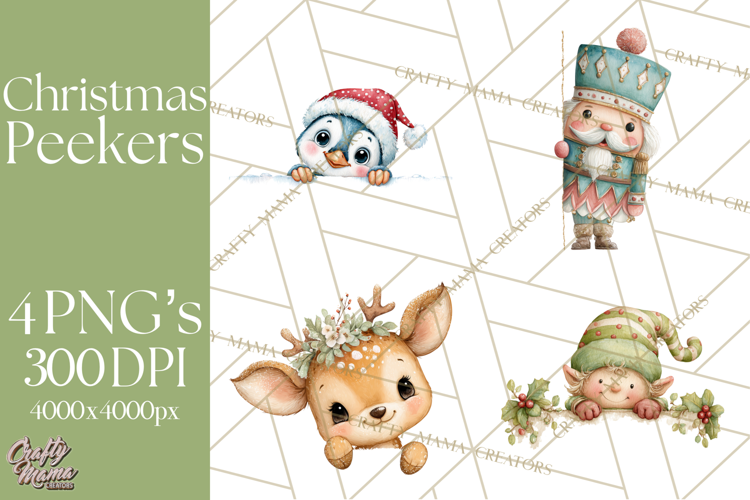 Christmas Peeking Characters Clipart, Cute Holiday PNGs