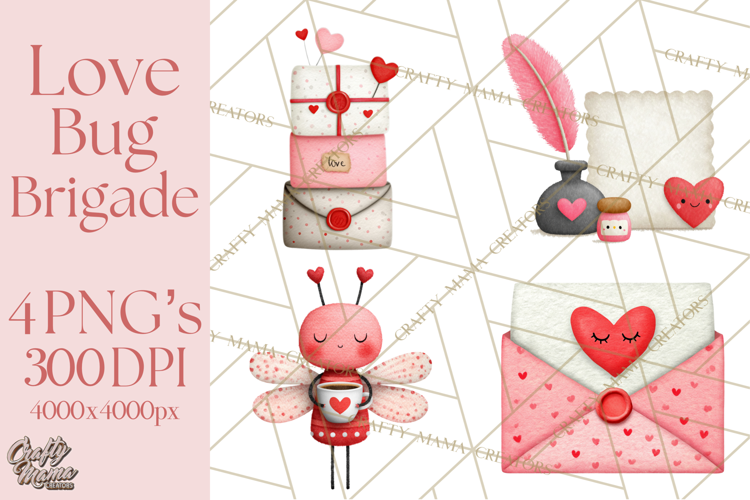 This adorable collection contains 48 individual high-quality graphics, perfect for bringing a sweet, whimsical touch to your creative projects. Featuring charming characters and props from the "Love Bug Brigade" mini world, this set is ideal for Valentine's Day crafting, invitations, sublimation, and printable decor.