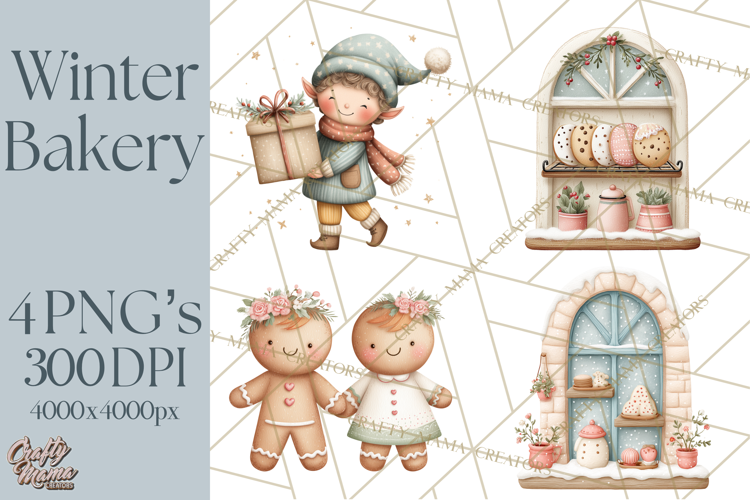 Gingerbread Winter Bakery Clip Art PNG Graphics