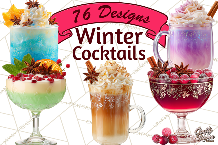 Warm up your winter designs with this delightful Whimsical Winter Cocktails clipart bundle! Perfect for cozy holiday projects, seasonal invitations, printable art, or digital designs. Each image is beautifully crafted with 76 unique cocktailsin PNG format300 DPI, and 4000x4000px resolution, ready for instant use.